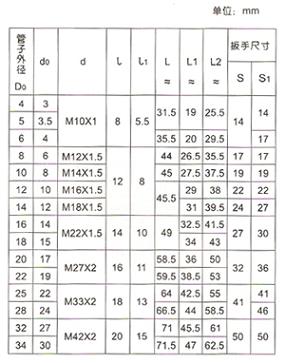 注:用户如特殊规格或类似管接头可在订货时说明,本公司同样可生产。