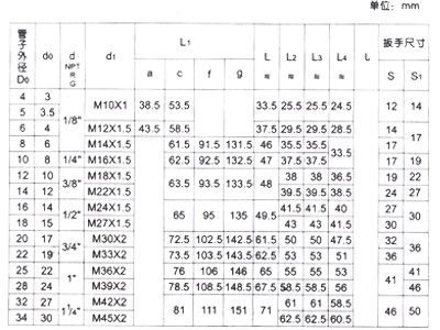 注:用户如特殊规格或类似管接头可在订货时说明,本公司同样可生产。