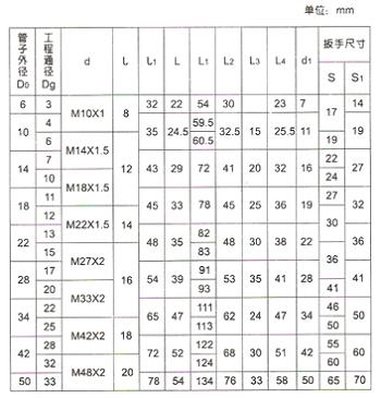 注:用户如特殊规格或类似管接头可在订货时说明,本公司同样可生产。