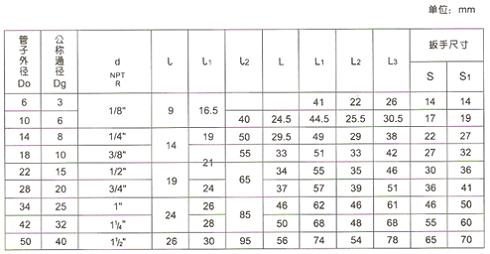 注:用户如特殊规格或类似管接头可在订货时说明,本公司同样可生产。