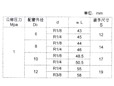标记示例:连接螺纹d=R1/4,配管外径为8mm的