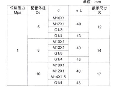 标记示例:连接螺纹d=M10*1,配管外径为6mm的QJ-3型管路