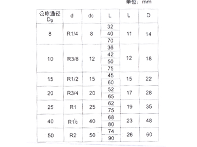 标记示例:所需螺纹d=R1/2,所需长度L=45mm的等径内接头: